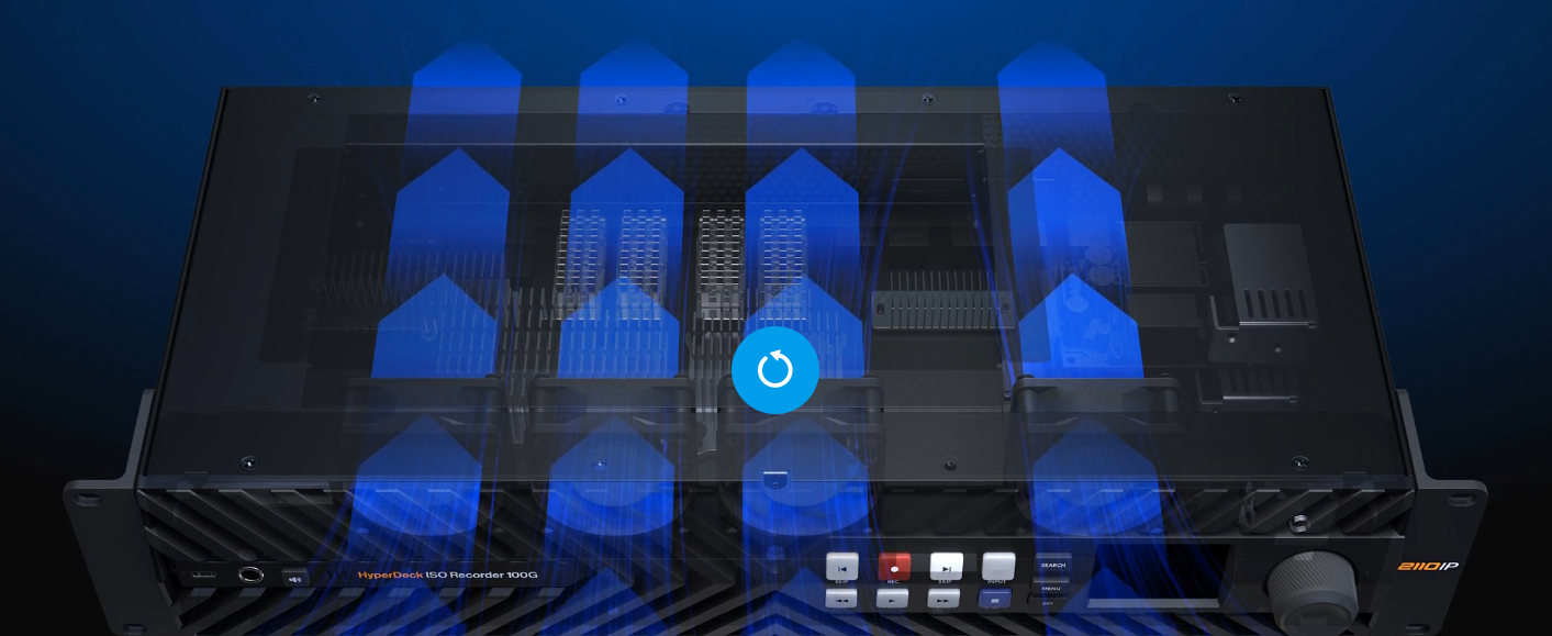 播出机构需要使用可靠的设备,它们不仅要带有冗余机制,还能提供全面的技术状态信息。HyperDeck ISO Recorder 100G能提供一套周全的冗余方案。SMPTE-2110 IP视频连接使用两个冗余100G以太网端口来连接到两个独立的视频网络。还有两个冗余100G以太网连接,可用于网络存储。当然,如果您不需要冗余方案,可以使用单个连接来共享数据和视频。甚至连PTP和控制端口也是冗余方案!此外,设备还设计有多个冗余冷却风扇和AC电源供应。配套的实用软件可提供风扇状态、内部CPU温度信息,以及所有网络端口上的数据传输速度。