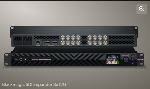 需要连接SDI设备时,只需添加一台Blackmagic SDI Expander 8x12G即可。它支持双向传输,搭载8路12G-SDI输入和8路12G-SDI输出,用于采集和输出。如果通过交换机连接,还可以混合使用IP和SDI视频。